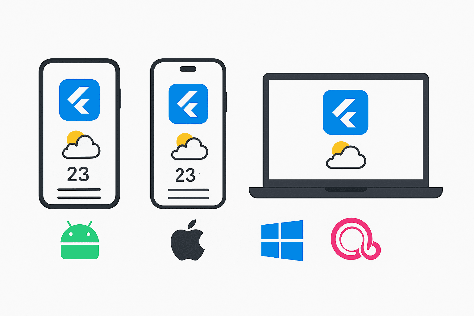 The Flutter app runs on all platforms, Android, iOS, Windows, and the upcoming Fuchsia OS. Make one single app and run it on all operating systems, on any device.